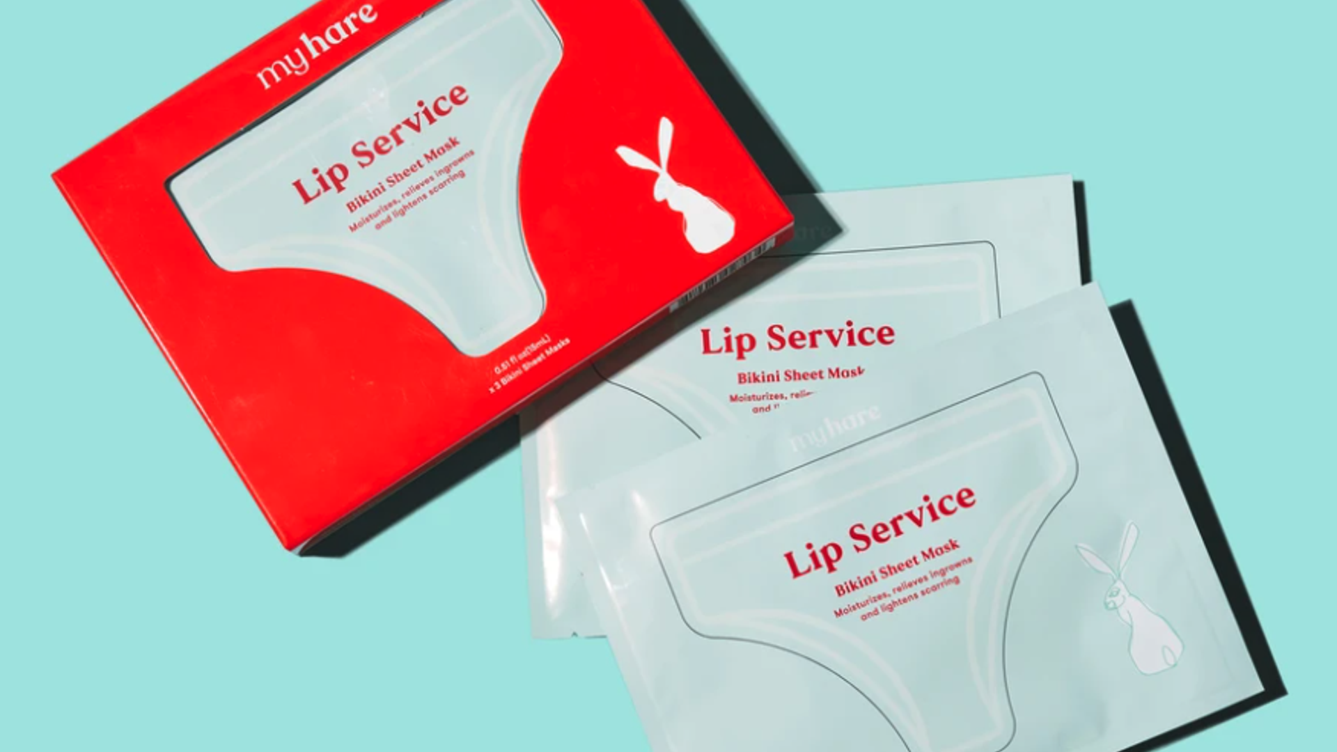 每個產(chǎn)品變體都裝在明亮的紅色或粉紅色盒子中,并帶有現(xiàn)代的襯線字體。每包包裝的一角都有鮮明的白色兔子(該品牌標(biāo)志符號),突出了整個設(shè)計(jì)中所使用的負(fù)空間。每個盒子上模切的窗戶都指示出應(yīng)在哪里使用(例如,一條內(nèi)褲表示該產(chǎn)品適合您的比基尼系列)。
