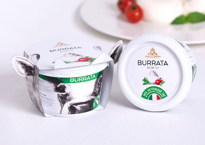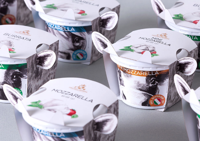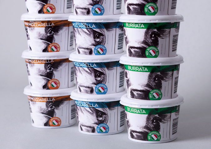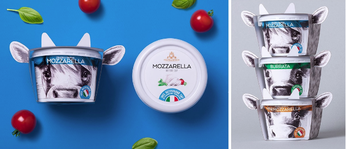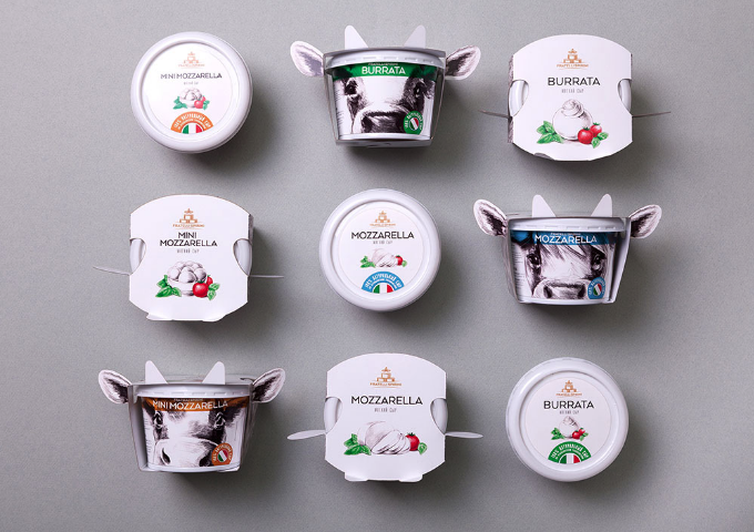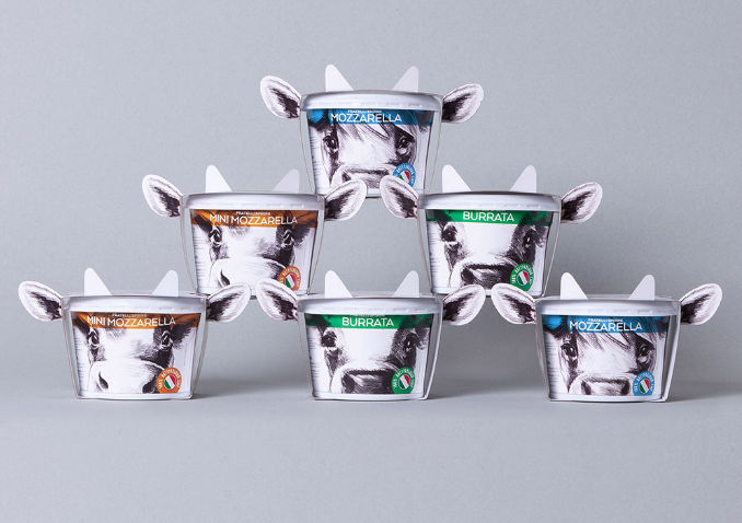 設(shè)計(jì)師把注意力集中在愛(ài)好喝酸奶的注意力上,創(chuàng)造了可愛(ài)的奶牛形象,突出品類屬性,強(qiáng)調(diào)天然乳品,帶有耳朵和牛角的創(chuàng)意,在商店的貨架上非常的突出,而且色彩定位很快的區(qū)分酸奶的口味,意大利國(guó)旗和食物區(qū)在顏色上的設(shè)計(jì),使其品牌與國(guó)家寓意明顯,產(chǎn)品新的標(biāo)識(shí),意大利技術(shù)奶酪