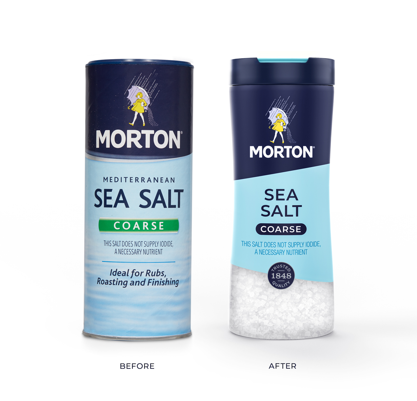 (Morton Salt)最近宣布了十多年來(lái)的首次重大包裝設(shè)計(jì)。Coarse Kosher,Coarse Sea Salt和Fine Sea Salt的新包裝為該品牌提供了一種全新的優(yōu)質(zhì)外觀,以吸引消費(fèi)者并推動(dòng)家庭廚師中特種鹽類(lèi)的增長(zhǎng)。