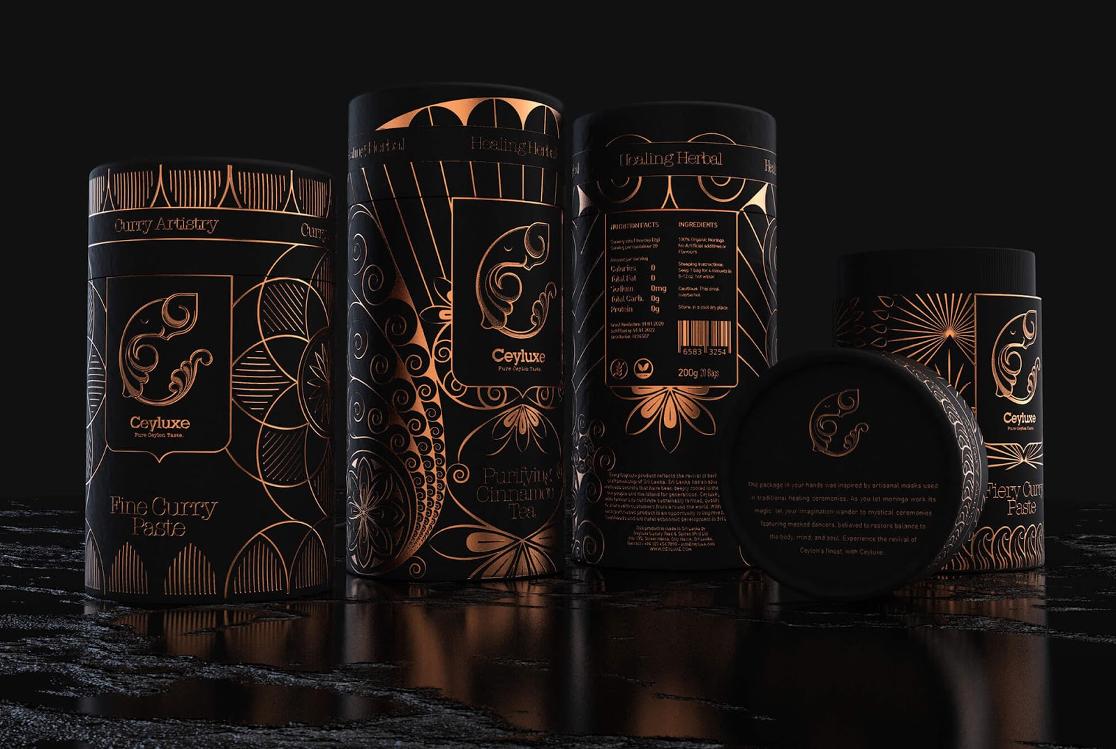 客戶需要一種獨特的包裝設計方法,以使其產品線與市場上的同類產品相比脫穎而出,并描繪出錫蘭的豪華和富麗堂皇的時代。