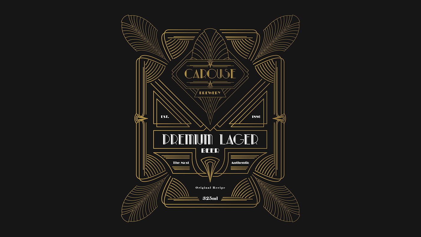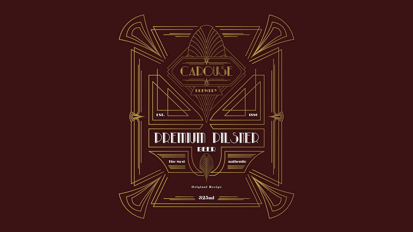 卡羅勒斯啤酒廠是一家位于美國密蘇里州的啤酒廠。裝飾藝術(shù)被選為他們身份和標(biāo)簽設(shè)計(jì)的主題和方向。裝飾藝術(shù)風(fēng)格的裝飾設(shè)計(jì)帶來了優(yōu)質(zhì)和復(fù)雜的印象,展示了他們釀造的優(yōu)質(zhì)啤酒。