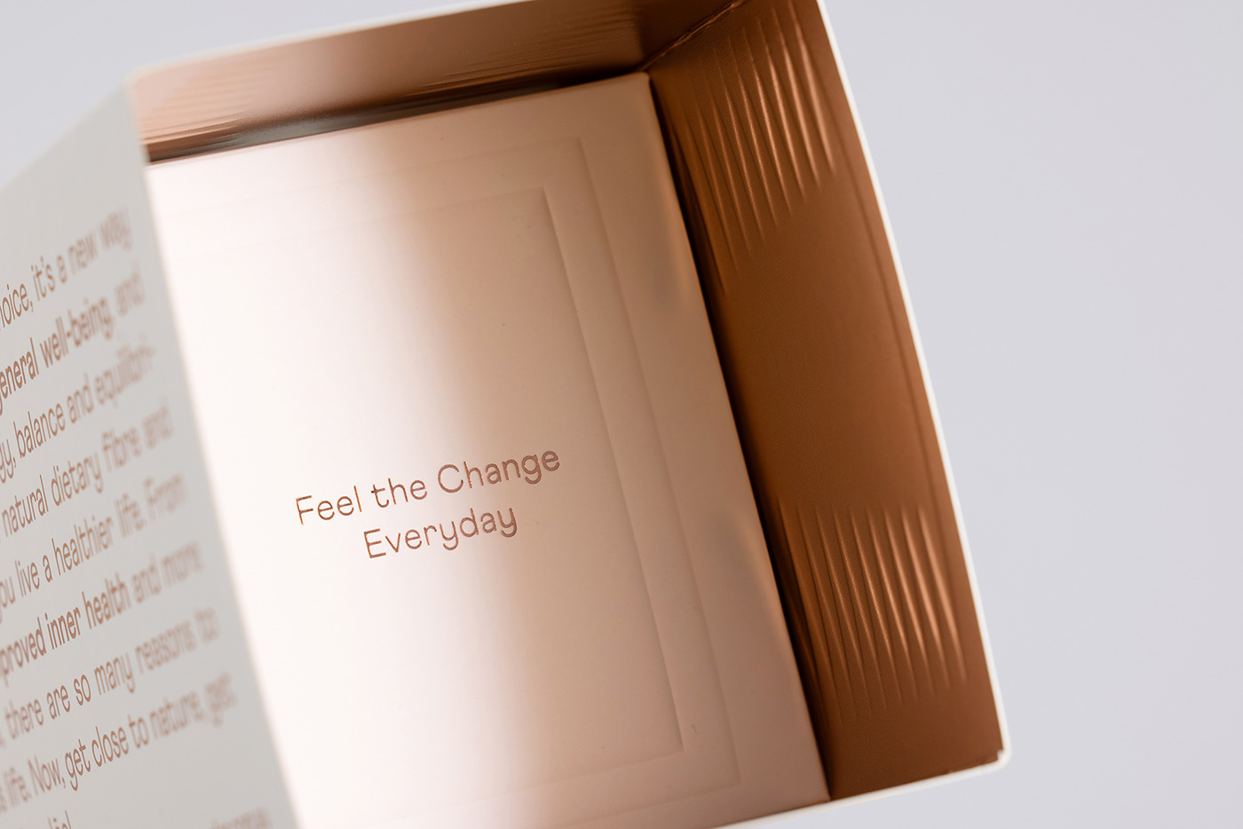 如何表達健康與美麗?這種包裝設(shè)計的整體輕盈清新的外觀回答了這個問題,通過包裝上的壓花技術(shù)將盒子內(nèi)的香包形象化,圖案以不同的角度出現(xiàn)/消失,這代表了你將在短短30天內(nèi)經(jīng)歷的變化。