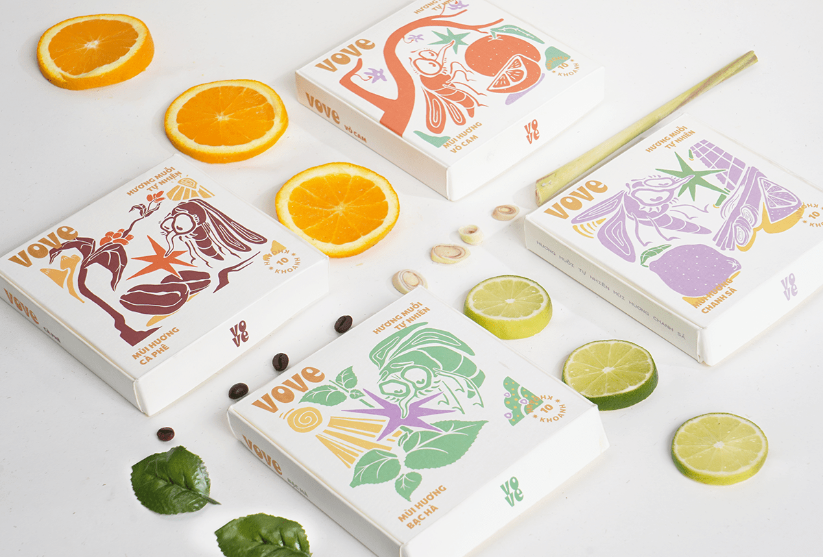 標(biāo)簽:蚊香品牌 VOVE 蚊香天然成分 產(chǎn)品香氣 系列香檸檬草 橙皮 咖啡 薄荷 年輕且環(huán)保的包裝 可回收材料 包裝融合 引人注目的有趣包裝組成 品牌產(chǎn)品包裝設(shè)計(jì)公司