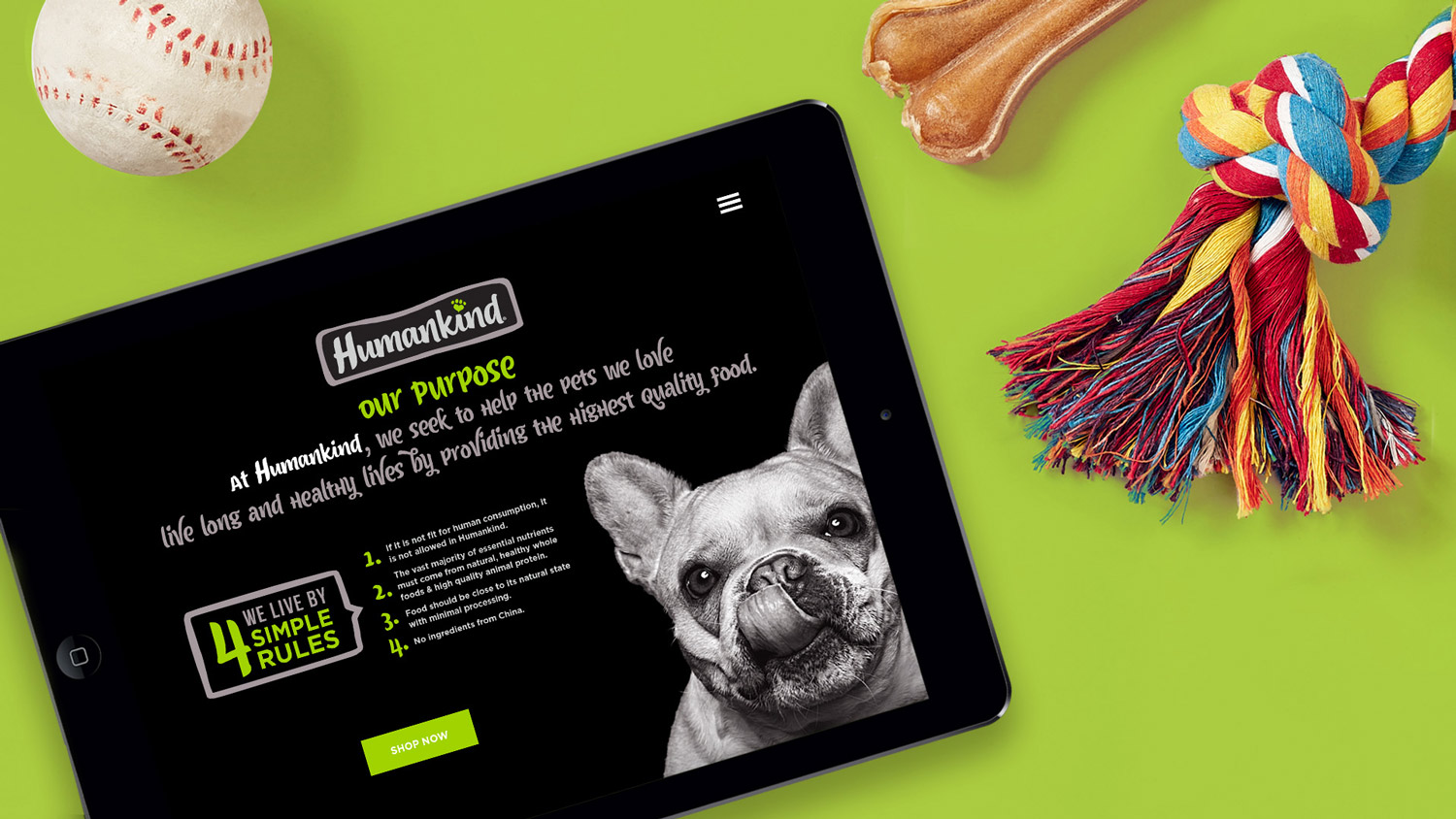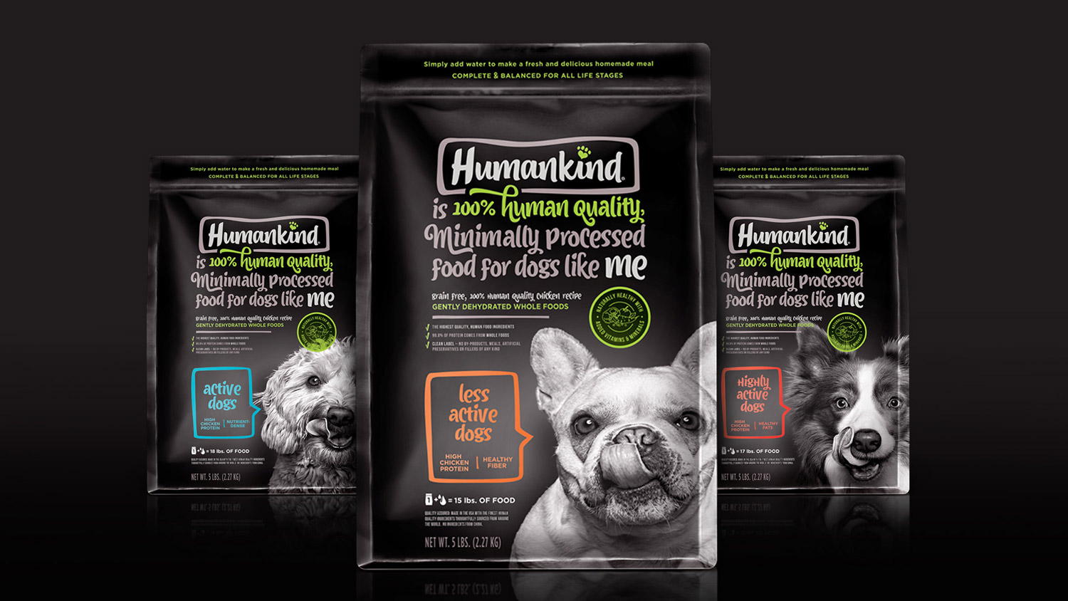 作為熱情的寵物父母,我們知道你喂你的寵物是什么直接關(guān)系到他們的長(zhǎng)期健康。我們只擁有新的品牌“人類”,著手開發(fā)一個(gè)品牌,該品牌將是唯一最重要的營(yíng)銷工具,用于這種超優(yōu)質(zhì)、人類級(jí)寵物食品,專門通過獸醫(yī)辦公室和在線銷售。結(jié)果是一個(gè)有品質(zhì)的黑色啞光袋,吸引了黑白攝影,用狗的眼神說話。