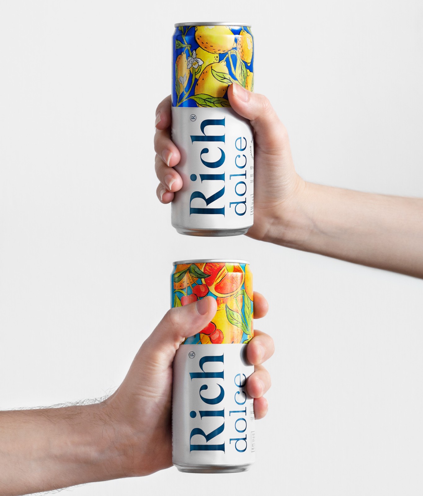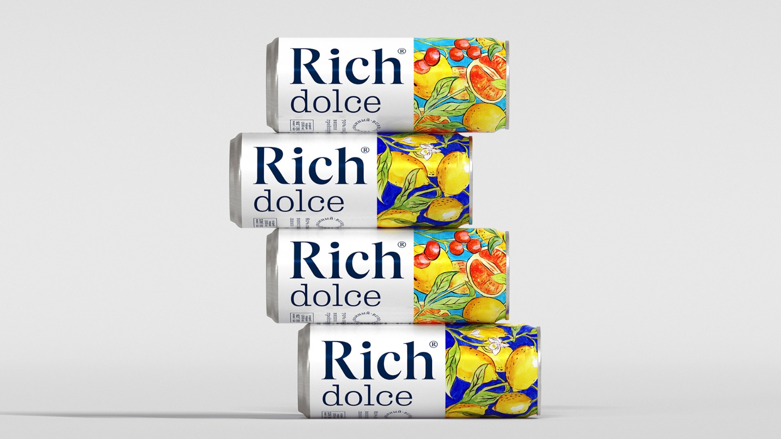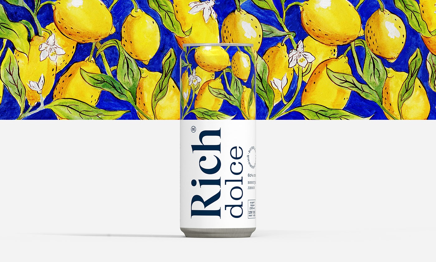 設(shè)計(jì)簡報(bào)果汁和花蜜品牌Rich推出了一種名為Rich Dolce的新產(chǎn)品,這是天然碳酸果汁飲料氣泡系列中的第一款產(chǎn)品。受意大利南部傳統(tǒng)的啟發(fā),Rich Dolce飲料含有高達(dá)70%的水果和漿果汁、水和泡沫,不添加糖。該產(chǎn)品有兩種口味:酸葡萄柚甜櫻桃和清爽的檸檬。創(chuàng)造一個(gè)視覺形象,反映簡潔和豐富的飲料性質(zhì),并顯示明亮的意大利性格。解決方案在開發(fā)設(shè)計(jì)的過程中,團(tuán)隊(duì)希望創(chuàng)造一個(gè)明亮、相關(guān)的解決方案,突出這種飲料并展示其優(yōu)勢。 大的標(biāo)志可以很容易地識(shí)別里奇品牌,這是果汁中公認(rèn)的質(zhì)量標(biāo)志?!癉olce”字體指的是具有歷史意義的19世紀(jì)克拉倫登字體。弗蘭創(chuàng)造的克拉倫登圖形公司(Clarendon Graphic)的ois Rappaud是這種類型字體的一種新的圖形方法,體現(xiàn)了它的現(xiàn)代主義潛力。泡泡線上有一個(gè)圓形標(biāo)志。 黃色和藍(lán)色/紅色和藍(lán)色的對(duì)比組合使其引人注目,明亮的藝術(shù)插圖參考了托斯卡納majolica的傳統(tǒng),讓人們感受到意大利的精神。