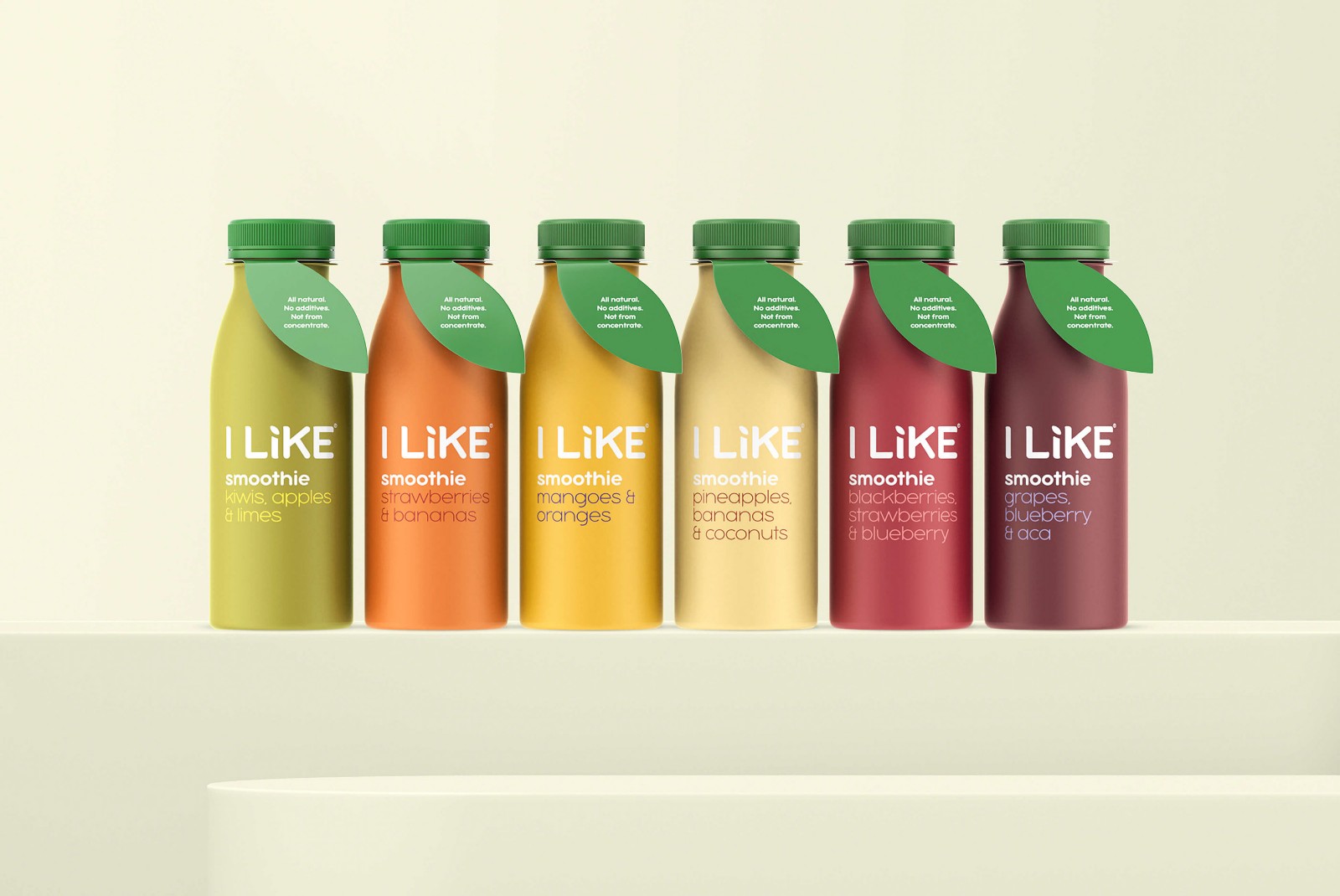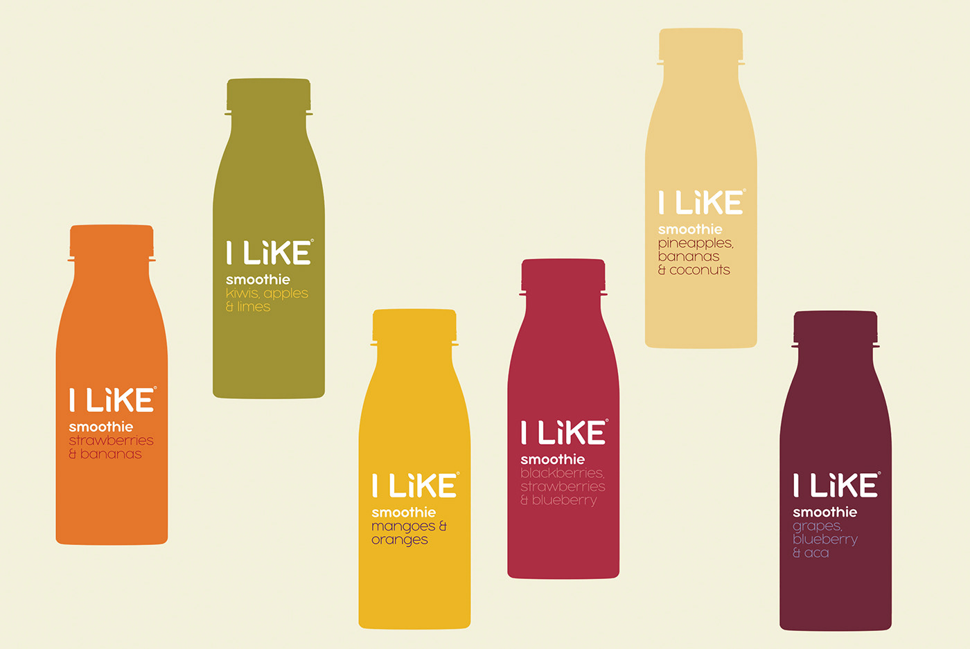 在開(kāi)發(fā)命名時(shí),我們希望在品牌名稱(chēng)和產(chǎn)品類(lèi)型之間建立聯(lián)系。結(jié)果是一個(gè)引人入勝,有趣的宣言-ILIKE /冰沙/葡萄或ILIKE /冰沙/芒果。這對(duì)整個(gè)產(chǎn)品線都適用。在開(kāi)發(fā)包裝樣式的過(guò)程中,我們?cè)噲D最準(zhǔn)確地傳達(dá)產(chǎn)品的自然性,飲料的原始顏色及其成分。結(jié)果是自然的,而不是浮華的啞光陰影。我們還添加了綠色的葉子-一些額外的元素,使包裝具有新鮮收獲的水果的圖像。