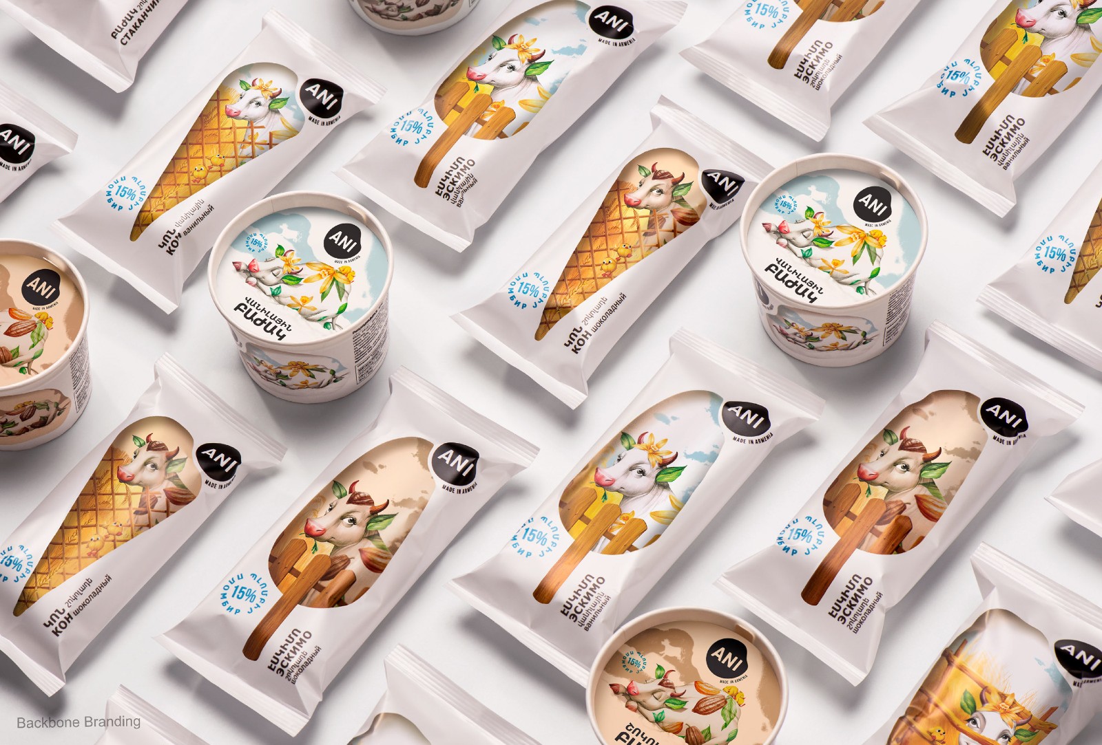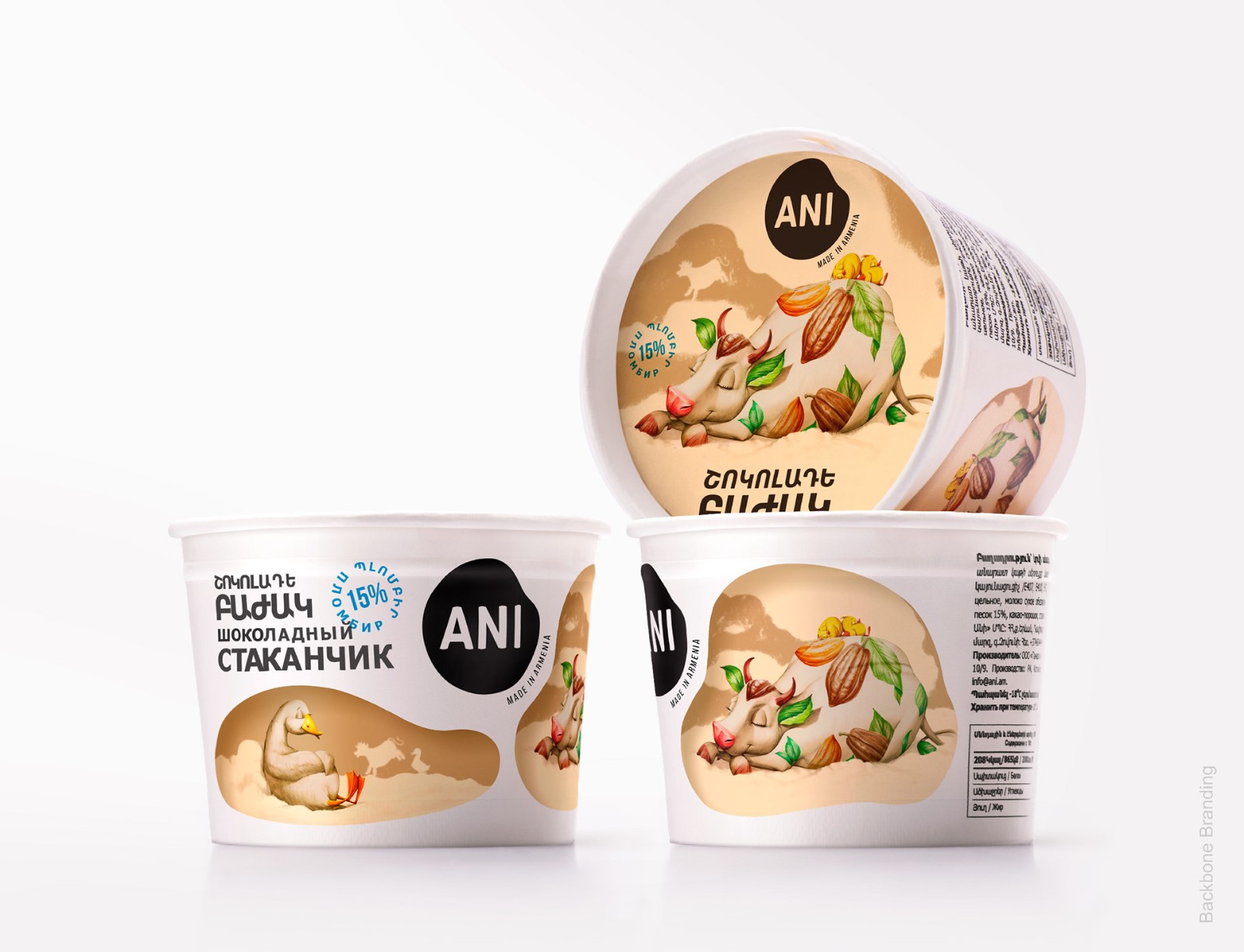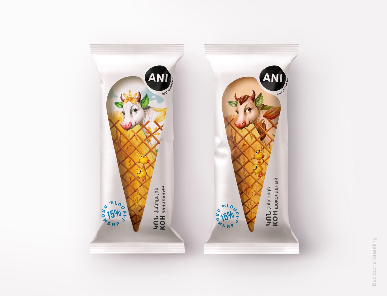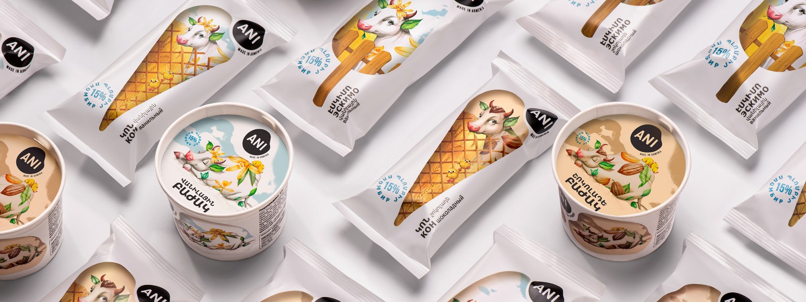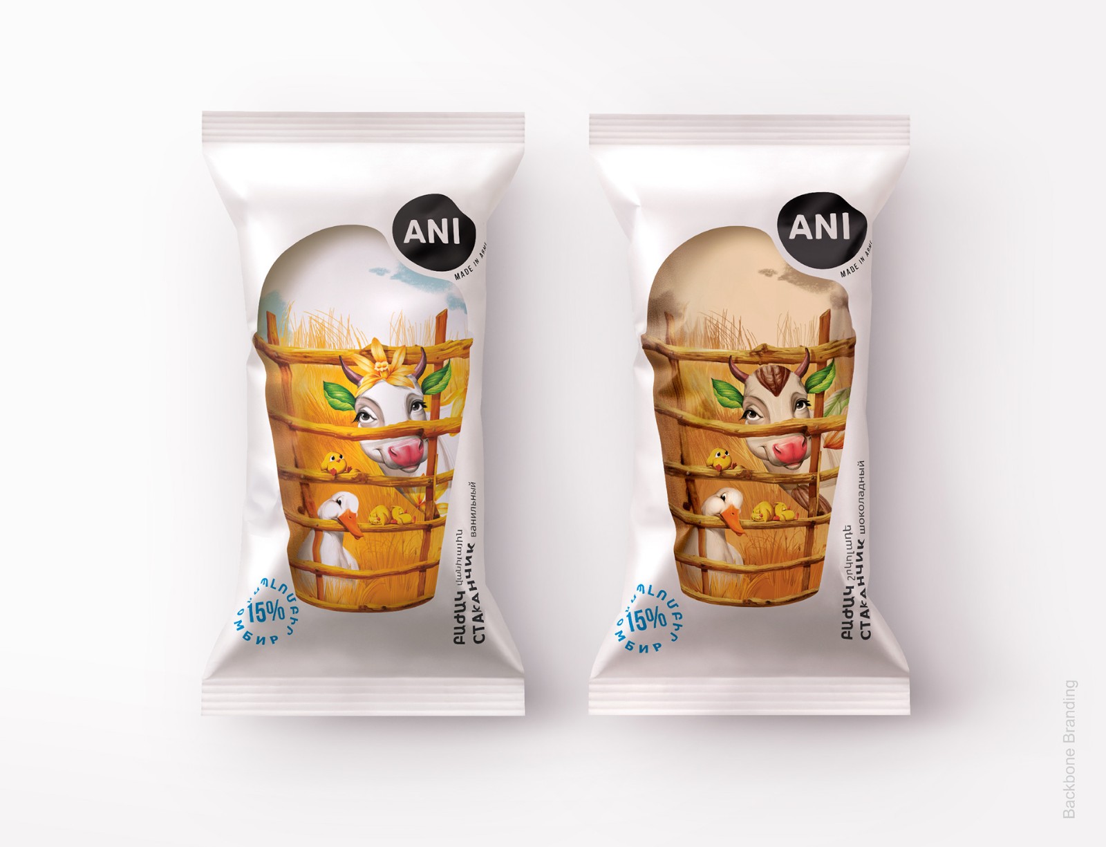 因此,每當(dāng)消費(fèi)者從遠(yuǎn)處看到超市冰箱里的冰淇淋時(shí),他都會(huì)看到一種令人垂涎的冰淇淋,在白色啞光背景下得到了強(qiáng)烈的強(qiáng)調(diào),從而產(chǎn)生了新鮮和適口性的聯(lián)想。通過仔細(xì)觀察,他們看到了“Tzaghik Kov”與它的朋友們——可愛的小雞和一只鴨子在不同的田園風(fēng)光中深受喜愛的身份,借助它們,我們想展示養(yǎng)花牛的健康環(huán)境。這樣做的目的是從遠(yuǎn)處就可以看到所有物。