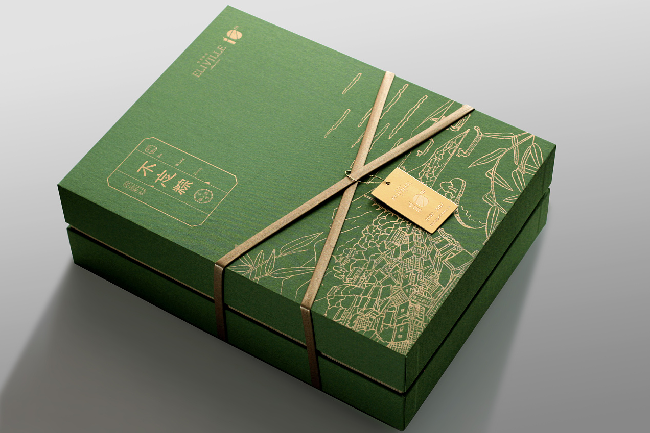 這款粽子包裝漂亮,金色與綠色的搭配,線條的故事畫面,讓地域文化表達(dá)出來